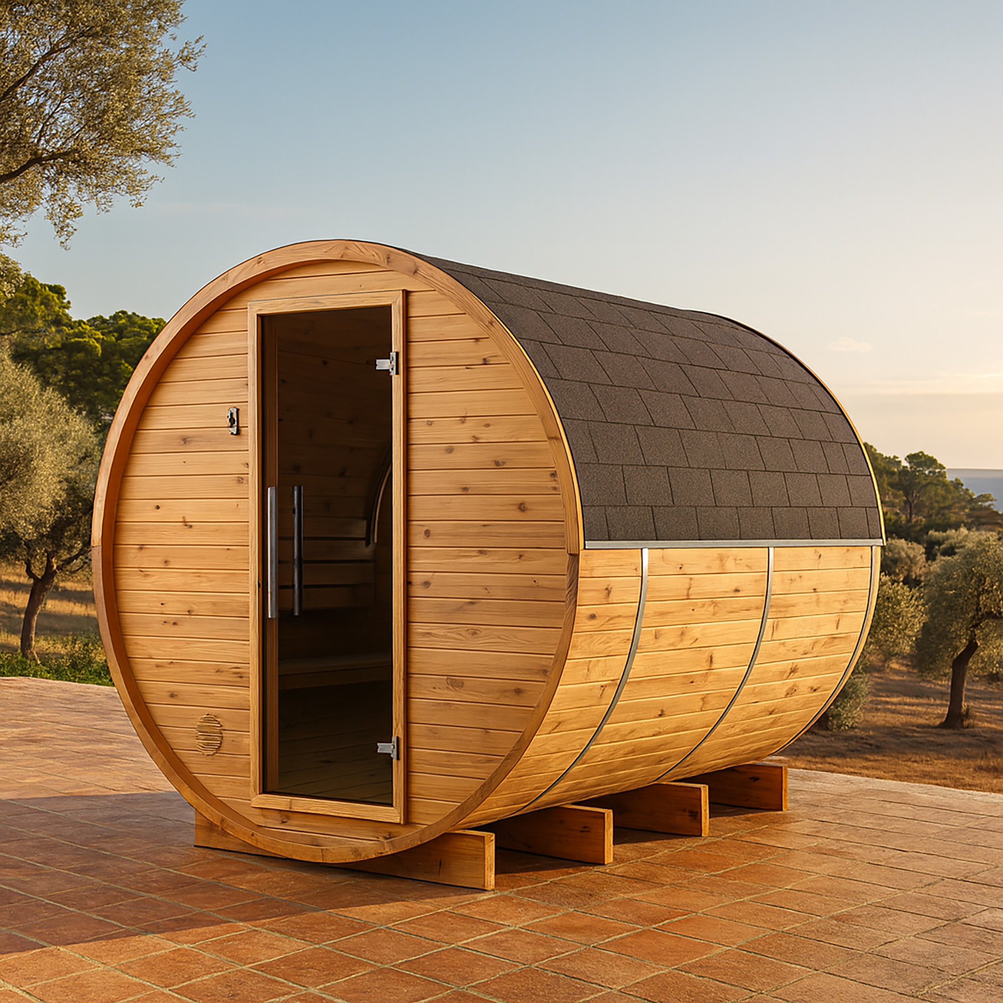 Die Halo Outdoor Sauna überzeugt durch ihr platzsparendes und modernes Design, das sich harmonisch in jede mallorquinische Umgebung einfügt – egal ob rustikale Finca, moderne Neubauvilla oder Boutique-Hotel. Ihre runde Form steht nicht nur für skandinavische Saunakultur, sondern optimiert gleichzeitig die Wärmeverteilung und Energieeffizienz. So entsteht ein besonders angenehmes Saunaklima – selbst bei wechselnden Wetterbedingungen der Insel.